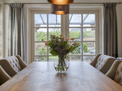 In deze woning komen landelijke charme en modern wooncomfort op een prachtige manier samen. De uitstraling van het huis doet denken aan de jaren ’50, terwijl het tegelijkertijd is voorzien van hedendaagse kwaliteit en praktische gemakken. Juist die combinatie zorgt voor een bijzonder aangenaam en sfeervol thuis.