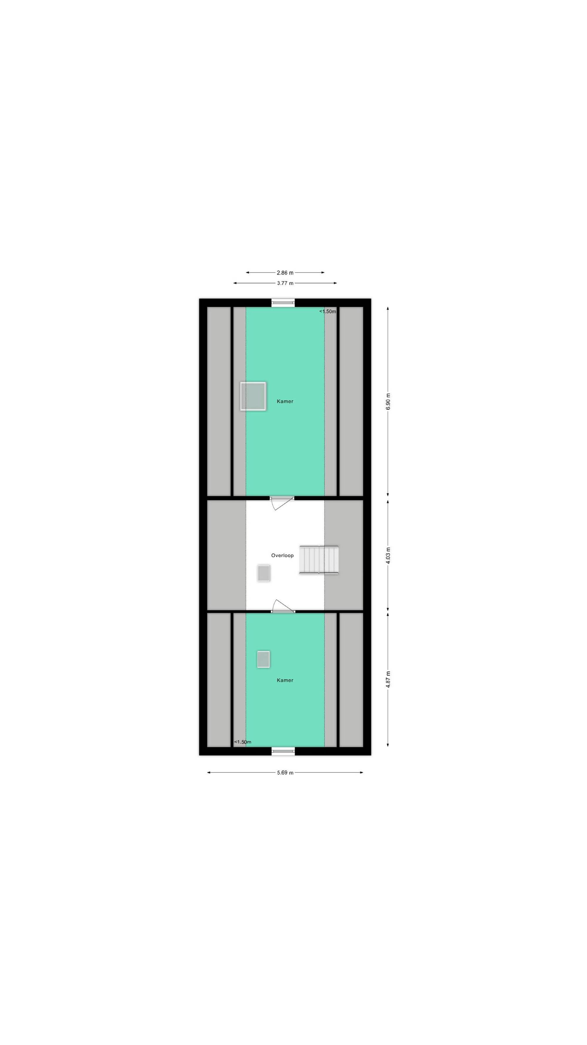 + De overloop biedt toegang tot een separate toiletruimte. Daarnaast bevindt zich hier een luik met vlizotrap naar een praktische bergzolder.