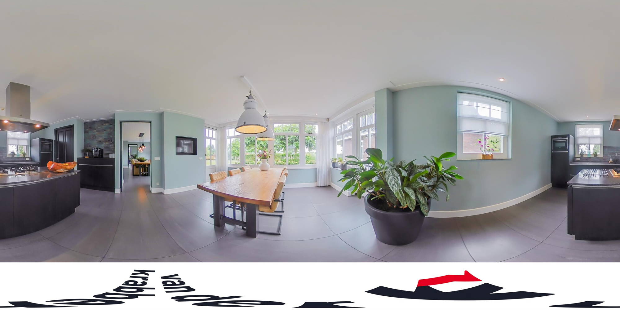 + De ruime entree met de moderne toiletruimte en de meterkast (12 groepen) biedt toegang tot het hart van het huis: de eetkamer.