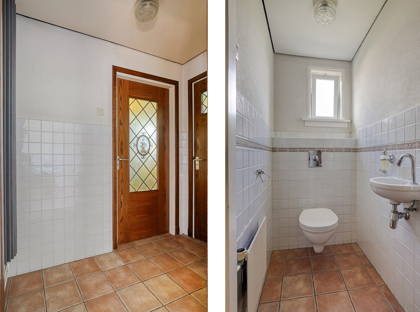+ Via de karakteristieke, getoogde voordeur stap je de woning binnen en kom je in een ruime entree met garderobenis en meterkast. De glas-in-looddeuren zorgen direct voor een warme en sfeervolle ontvangst, die de toon zet voor de rest van de woning.