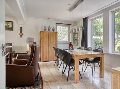 Je komt binnen in een ruime hal waar direct een gevoel van licht en ruimte op je afkomt. Op de begane grond zorgen de karakteristieke glas-in-lood (voorzet)ramen voor extra sfeer en een uniek accent. Via de hal loop je door naar de woonkamer of de keuken. De woonkamer is royaal, sfeervol en lekker licht dankzij de grote ramen. Voor warme dagen is er een airco aanwezig en via de openslaande deuren sta je zo in de serre. Een volwaardige extra leefruimte, met harmonicadeuren die helemaal open kunnen. Zo loopt binnen moeiteloos over in buiten. De begane grond is vrijwel helemaal uitgerust met vloerverwarming en isolerende beglazing.