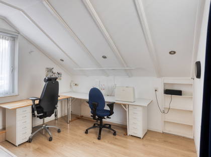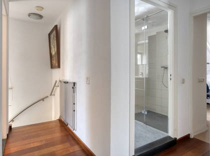 Op de eerste verdieping vind je vier slaapkamers, waarvan de grootste zijn voorzien van rolluiken en airconditioning. De badkamer is netjes en compleet, met een inloopdouche, ligbad, wastafelmeubel, toilet, vloerverwarming en infraroodlamp. Op de zolderverdieping is er nog mogelijkheid tot het creëren van een extra slaapkamer. Momenteel wordt deze gebruikt als bergzolder.
