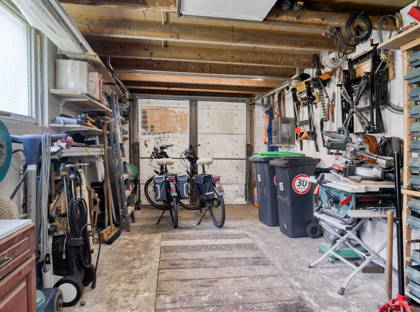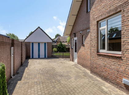 • Vrijstaande garage met krachtstroom met overkapping achter de garage voor stalling van de aanhanger en/of caravan.