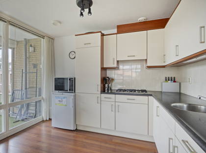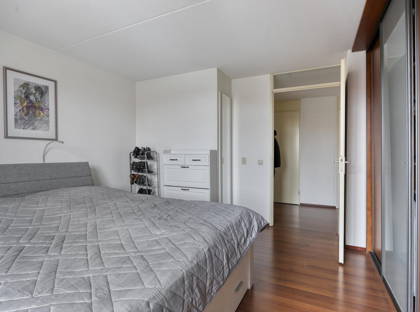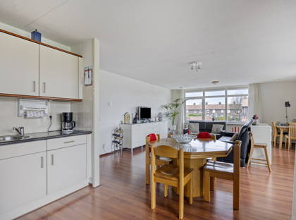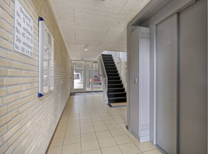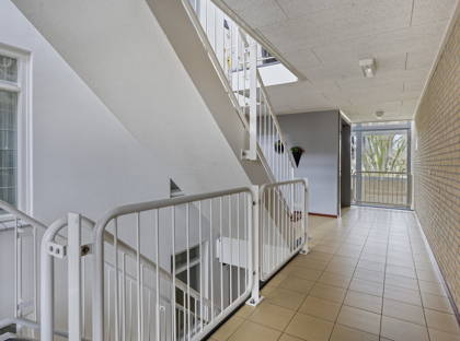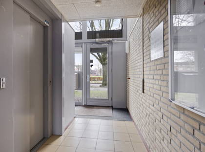 Het appartement zelf biedt een slimme en praktische indeling. Via de centrale entree, die beveiligd is met een videofoon en bereikbaar met zowel lift als trap, kom je via de nette, inpandige galerij bij de voordeur aan. Binnen wacht een ruim opgezet appartement dat je direct een warm welkom geeft. De woonkamer baadt in het licht dankzij grote raampartijen aan twee zijden, een fijne plek om thuis te komen en prettig in te richten. Door het hoekligging karakter oogt dit appartement nóg ruimtelijker en geniet je van extra privacy.