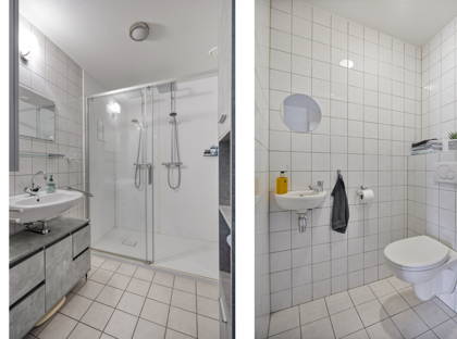 Er zijn twee ruime slaapkamers, beide voorzien van grote ramen die de kamers heerlijk licht maken. De badkamer is in een moderne en neutrale stijl uitgevoerd met een comfortabele inloopdouche. Daarnaast beschikt het appartement over een praktisch washok met plek en aansluitingen voor wasmachine en droger, evenals een fijn balkon waar je lekker buiten kunt zitten. Het appartement is bovendien rolstoelvriendelijk.