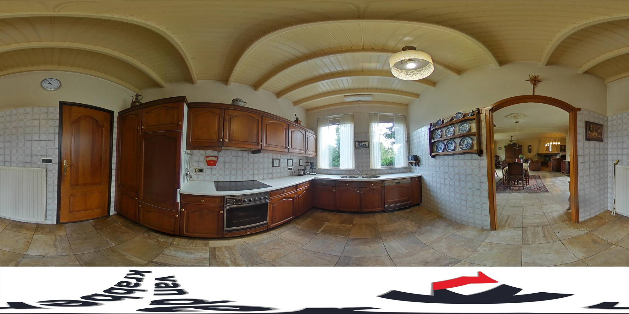 + Travertinvloer in de hal gaat verder in de gang, woonkamer en keuken.