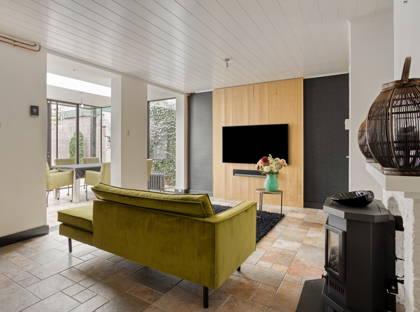 De woning is in 2024 verbouwd en gemoderniseerd, waardoor een instapklare woning is ontstaan in combinatie met een warme, karaktervolle uitstraling. Via de hal kom je binnen in de sfeervolle woonkamer, afgewerkt met een tegelvloer en voorzien van een gaskachel. Via de woonkamer loop je de uitgebouwde leefkeuken binnen, die in 2021 volledig vernieuwd is. Deze ruimte vormt een mooie combinatie van koken en samenkomen, en is uitgerust met een afzuigkap, gaskookplaat en een koel-vriescombinatie. De uitbouw uit 2021 is voorzien van aluminium kozijnen met HR ++glas en draagt bij aan zowel de moderne uitstraling als de prettige lichtinval.