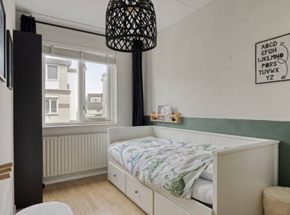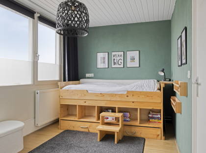 + Drie slaapkamers op de verdieping hebben prima afmetingen en een fijne lichtinval. De gehele verdieping is voorzien van spachtelputzwanden en een laminaatvloer.