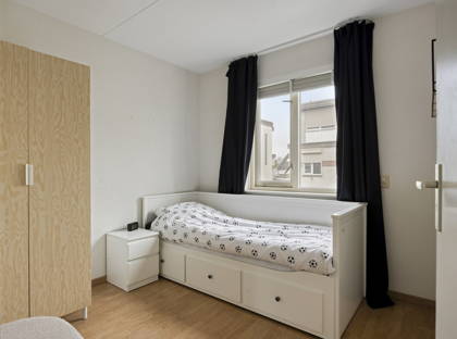 + Vaste trap naar de opgebouwde bovenverdieping met twee royale kamers. De kamers hebben een brede ramenrij en een laminaatvloer. In de kamer aan de achterzijde is airco beschikbaar.