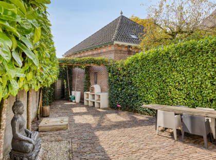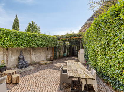 De stadstuin is fraai aangelegd en biedt optimale privacy. Met meerdere zitplekken is het hier genieten van zon en schaduw. Achterin bevindt zich een handig fietsschuurtje. Via een achterom is er toegang tot de Spoorlaan – een waardevol pluspunt in hartje stad.