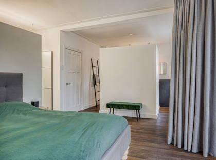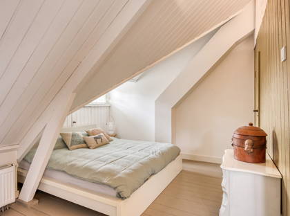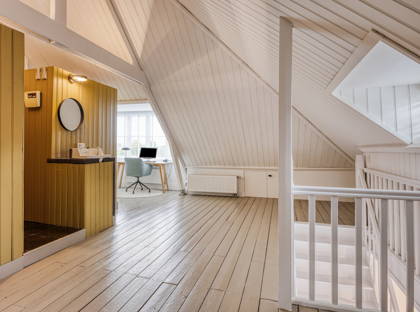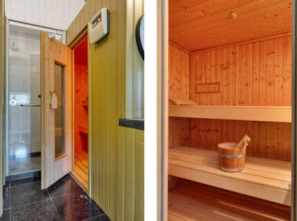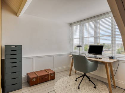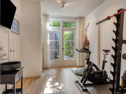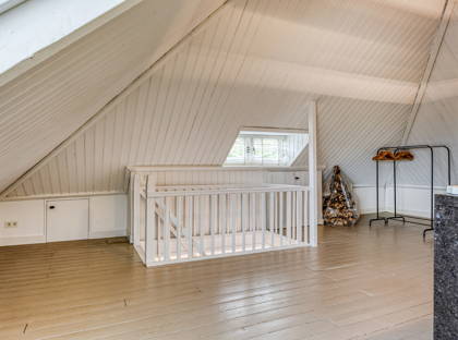 De tweede verdieping is een royale, multifunctionele ruimte met veel licht en mogelijkheden. Hier bevindt zich nu een wellnessgedeelte met sauna, douche en extra toilet, maar de ruimte kan ook perfect dienstdoen als logeerkamer, loft, werkruimte of atelier. Daarmee is dit een verdieping die veel vrijheid biedt voor eigen invulling.