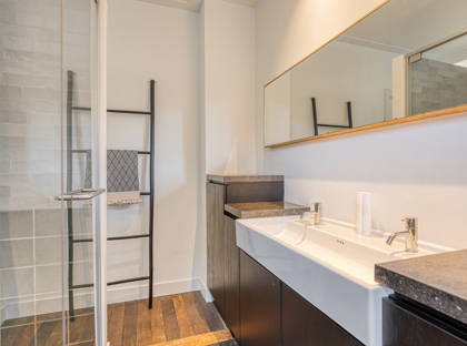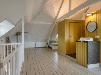 Op de eerste verdieping vind je twee ruime slaapkamers, beide met een Frans eiken vloer van oude wagonplanken.