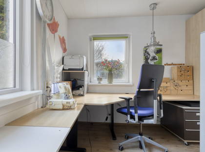 + Extra ruimte op de begane grond met uitzicht op de tuin: perfect als werk- of hobbykamer.