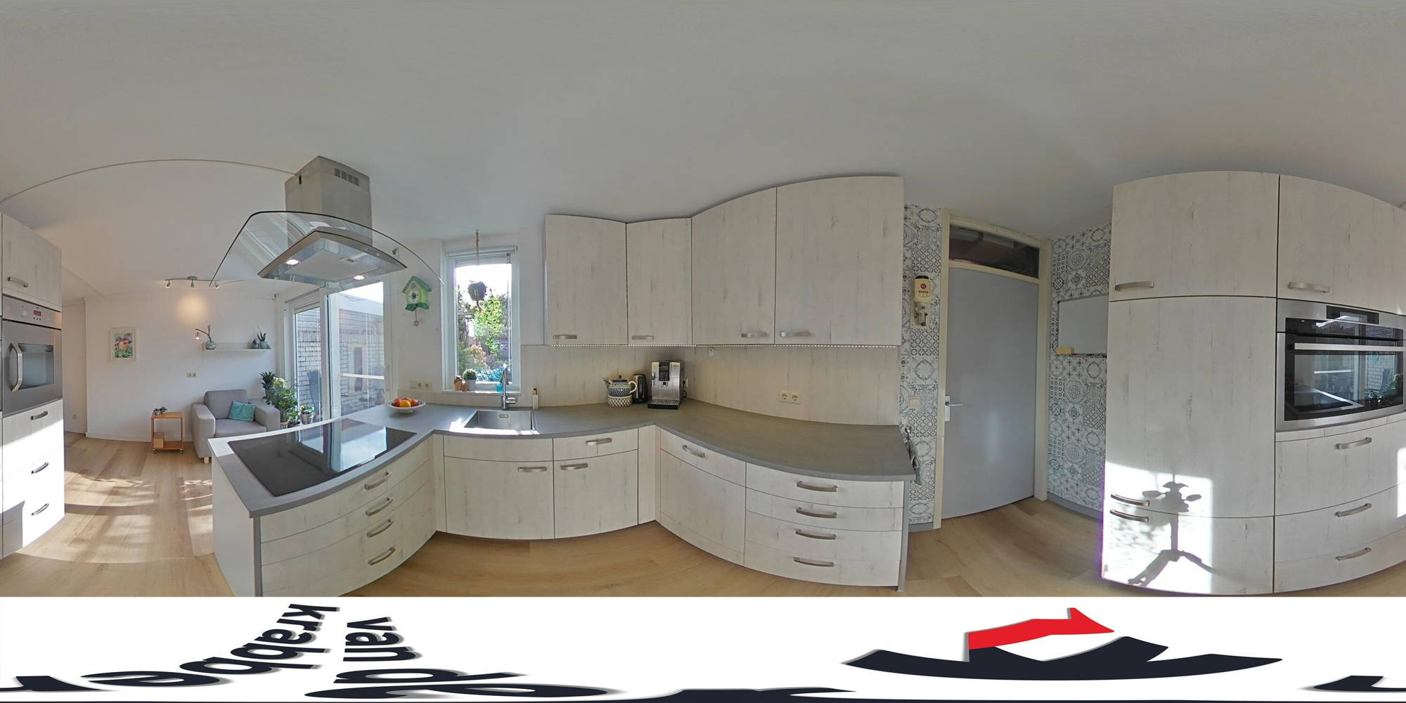 + Open keuken voorzien van oven, combi-oven, inductiekookplaat, afzuigkap, koelkast, vriezer en vaatwasser.