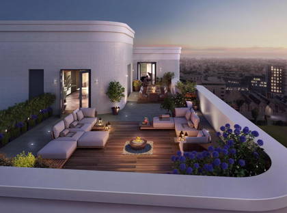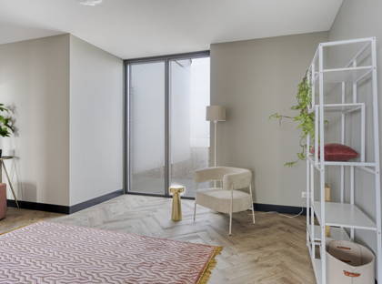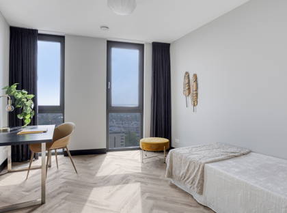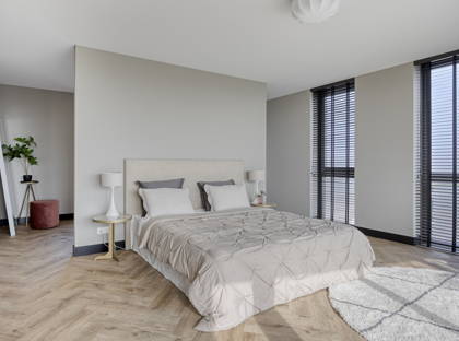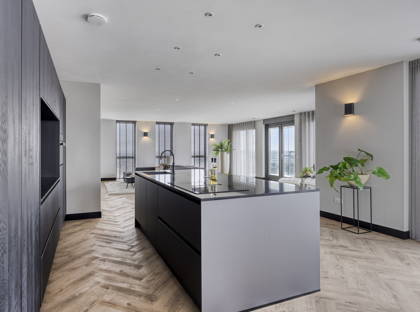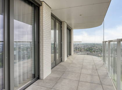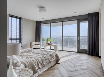 Binnen in het penthouse blijven de onvoorstelbare uitkijken door alle raampartijen en glasgevels gehandhaafd. Elk venster biedt als het ware elke keer weer een bijzonder stadsgezicht. Dat ruimtelijke gevoel met panoramische zichtlijnen krijg je in het ruime woongedeelte met living en leefkeuken. Maar het komt ook zeker terug in de masterbedroom met en-suitebadkamer en eigen balkon. En in de multifunctionele tweede slaapkamer.