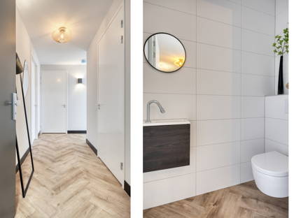 + In de gehele woning ligt een sfeervolle houten vloer in visgraatmotief met vloerverwarming.