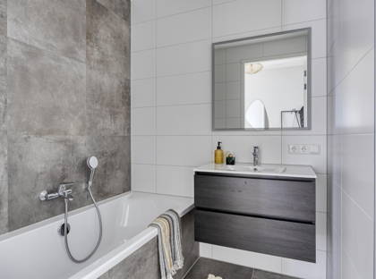 + Tweede badkamer is voorzien van een ligbad, inloopdouche met hand- en regendouche en een badkamermeubel.