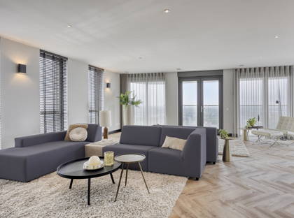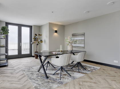 Het penthouse is nog nooit bewoond geweest en verkeert daardoor in nieuwstaat. De huidige inrichting is uitsluitend geplaatst om de sfeer en de ruimtebeleving te tonen.