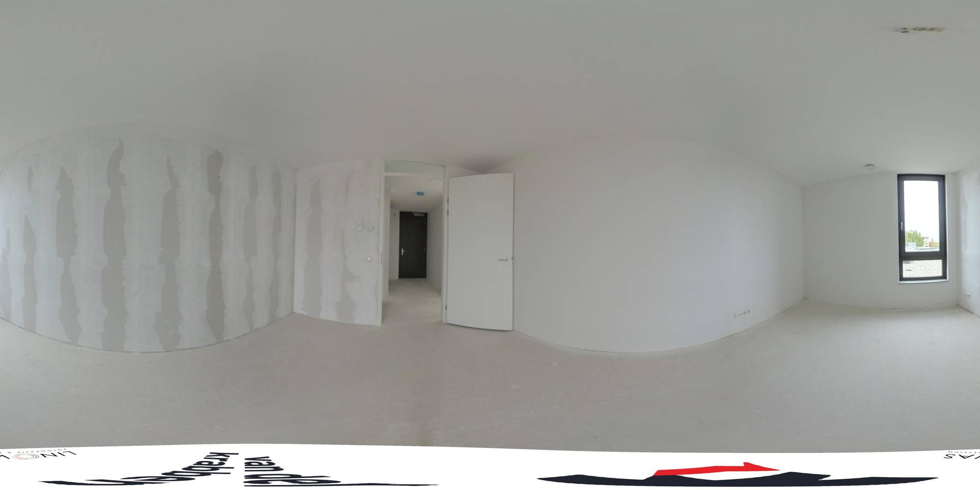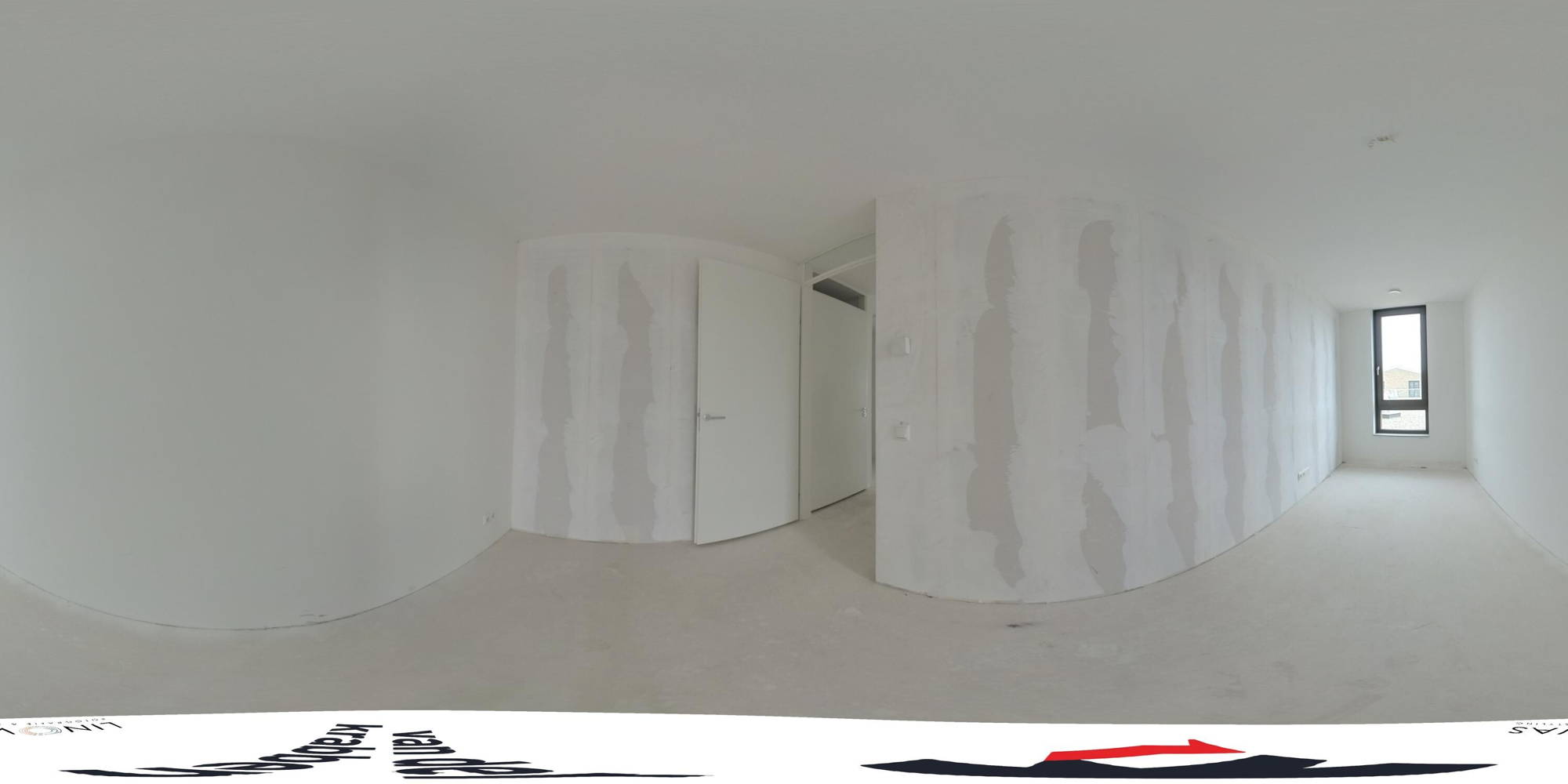 + Binnenkomst in de hal met de toegangsdeuren van de diverse ruimtes.