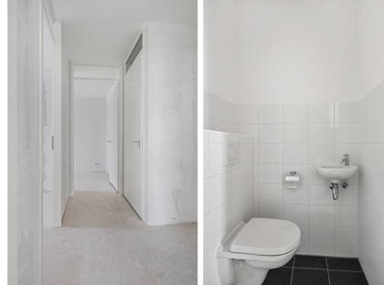 + De separate toiletruimte bevat een wandtoilet en fonteintje.