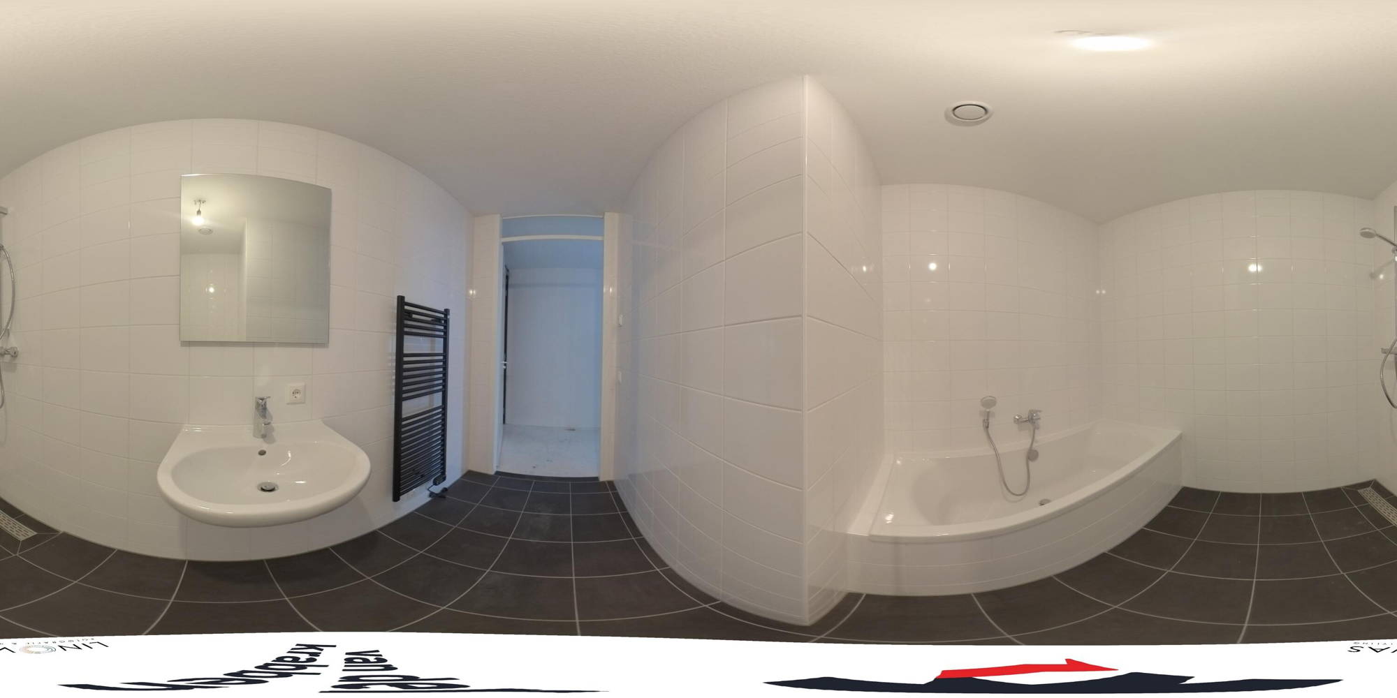 + Badkamer: Volledig betegeld en voorzien van een ligbad, wastafel en designradiator.