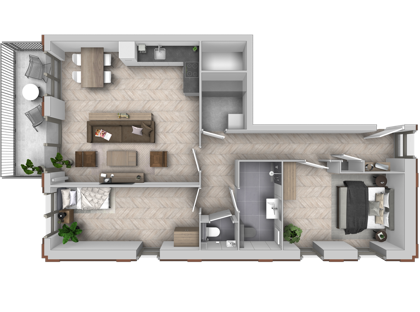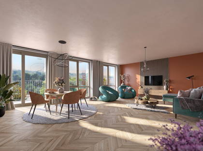 + Dankzij de grote ramen voelt de royale woonkamer ruim en licht aan. Het panoramische uitzicht en de directe toegang tot het balkon maken deze ruimte extra bijzonder.