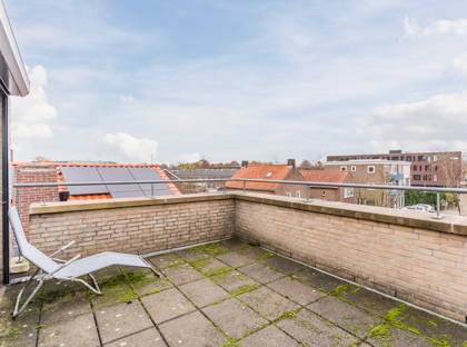 + De tweede verdieping is met een vaste trap bereikbaar en biedt een derde ruime slaapkamer met laminaatvloer en strak stucwerk. Ook heb je vanuit deze slaapkamer toegang tot het zonnige dakterras.