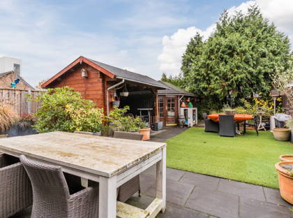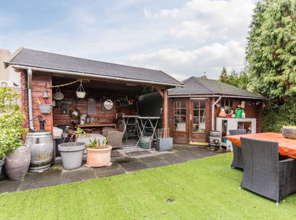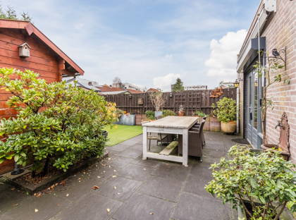 + De tuin is opvallend ruim en door het kunstgras, het royale terras met zonneluifel, de overkapping en het houten tuinhuis een heerlijk plek waar je in alle rust én met weinig onderhoud kunt genieten van veel privacy.