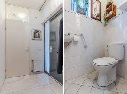 + De hal geeft toegang tot de meterkast en de toiletruimte met toilet en fonteintje.