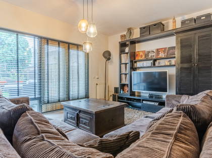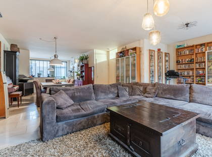 + De tuingerichte woonkamer is erg ruim en heeft openslaande deuren naar het terras. De ruimte is afgewerkt met een marmeren vloer en strak stucwerk, waardoor het een tijdloze en verzorgde uitstraling heeft.