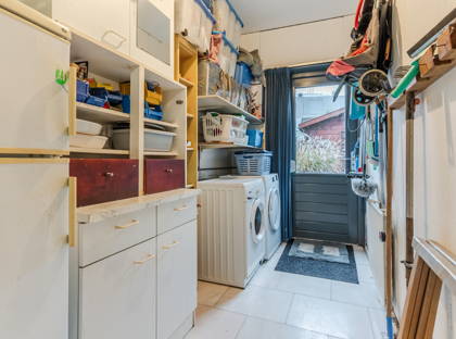 + De bijkeuken biedt plaats voor de wasmachine en droger en zorgt voor extra bergruimte.