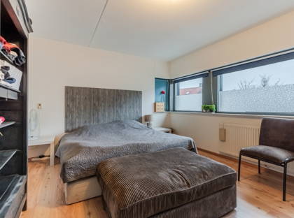 + De eerste verdieping bestaat uit de overloop, twee volwaardige slaapkamers en de badkamer. Elke slaapkamer is afgewerkt met een laminaatvloer, strak stucwerk en rolluiken. De hoofdslaapkamer beschikt daarnaast over een inbouwkast.