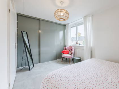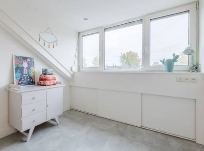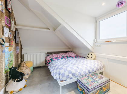 + Twee slaapkamers op de verdieping hebben prima afmetingen en een fijne lichtinval. In de hoofdslaapkamer is een kastenwand gemaakt.