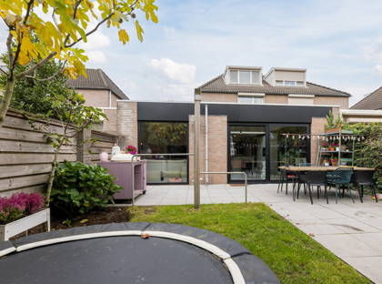 In de tuingerichte leefkeuken zul je dan nog extra onder de indruk raken. Door de lichtstraat, brede schuifui en het wandhoge raam baadt deze leefruimte in daglicht. De overgang naar de tuin op het zuiden lijkt vervolgens te vervagen. Terwijl de luxe uitvoering van het ruimtelijke kookgedeelte veel modern comfort biedt. En dit indrukwekkende woongevoel blijft vervolgens bij je als je verder gaat over de begane grond en de beide verdiepingen. De omgebouwde garage - met berging en een extra kamer - voegt hier, samen met de ruime slaapkamers op de verdiepingen, veel flexibiliteit aan toe.