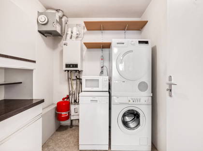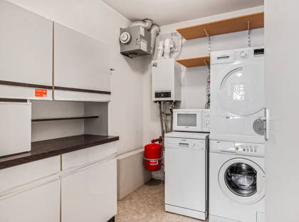 De bijkeuken is een handige extra ruimte met aansluitingen voor wasmachine, wasdroger en vaatwasser. Hier bevindt zich ook de Nefit CV-ketel (2019).