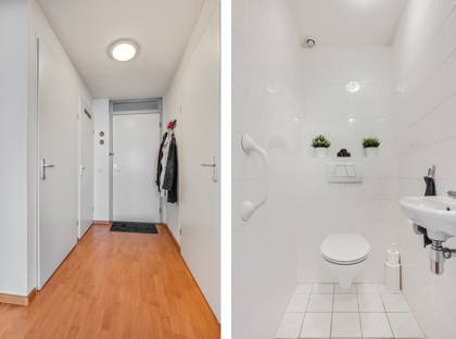 Bij binnenkomst kom je in een ruime hal die toegang geeft tot vrijwel alle vertrekken in het appartement. Hier bevindt zich ook de meterkast.