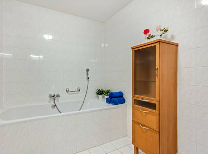 Het appartement beschikt over twee slaapkamers, beide voorzien van vloerbedekking en spachtelputz wanden. De kamers zijn goed bruikbaar als slaap-, werk- of logeerkamer.