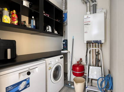 + Praktische bijkeuken met plek voor wasmachine, droger en extra witgoed.