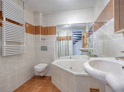 Op de eerste verdieping bevinden zich drie slaapkamers, allemaal voorzien van laminaatvloeren, strak afgewerkte spuitwerkwanden, strak gestucte plafonds en grotendeels voorzien van HR++ glas. Op de overloop is een handige bergkast aanwezig. De badkamer is compleet uitgevoerd met een ligbad met bubbel functie, een aparte douche, een zwevend toilet, een designradiator en een wastafelmeubel.