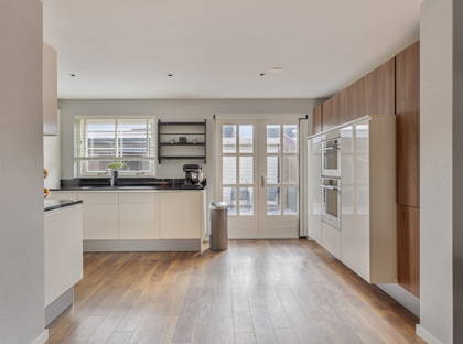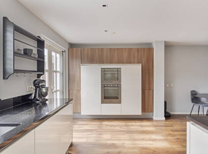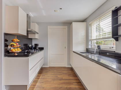 + Door de uitbouw is er aan de achterzijde een royale leefkeuken gerealiseerd. Er is ruim plaats voor een grote eettafel en de openslaande deuren geven hier een vloeiende verbinding tussen binnen en buiten. Het plafond is voorzien van geïntegreerde spotverlichting.