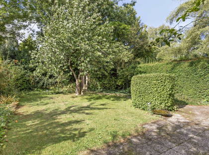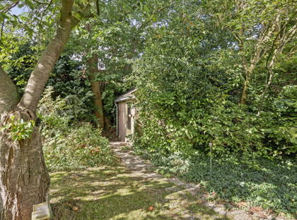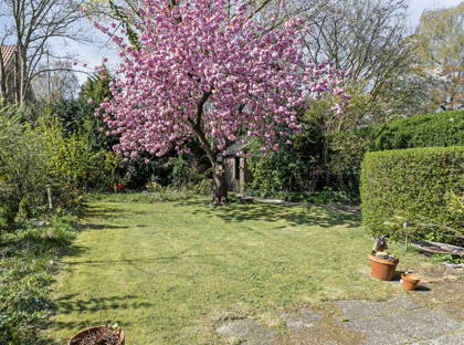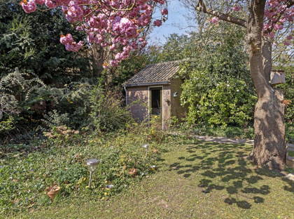 + De diepe achtertuin is prachtig vormgegeven en weelderig groen ingericht met bomen, heesters, gazon, perken, borders en hagen. De opzet zorgt voor veel privacy. De ligging op het zuidoosten garandeert veel zonuren. Achter in de tuin staat een stenen berging met bergzolder.