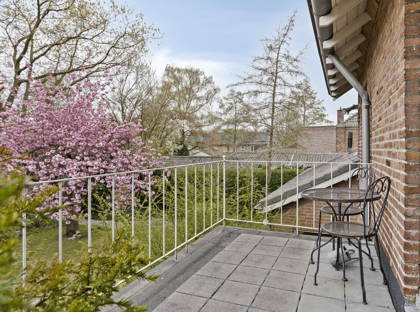 De grote vensters geven de ruime woonkamer in elk geval een sfeervolle uitstraling. Dat gaat samen met mooie zichtlijnen, waaronder een weidse blik op de grote achtertuin. Die uitkijk is er overigens ook vanaf het grote balkon bij een slaapkamer boven. De extra zithoek aan de voorzijde van de woonkamer, de leefkeuken, bijkeuken en garage maken de royale begane grond vervolgens helemaal compleet.
