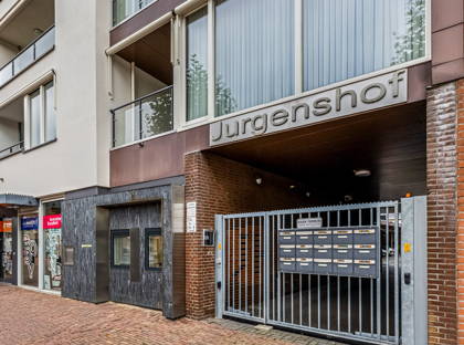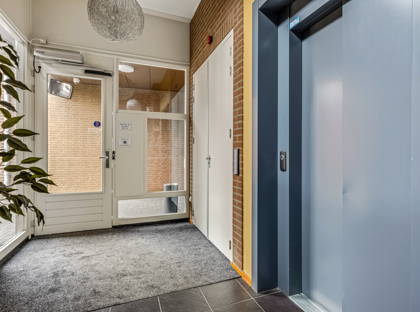 + Met videofoon beveiligde toegang tot de centrale hal. Vervolgens via lift of trap en overkapte galerij naar de voordeur van het appartement op de derde verdieping.