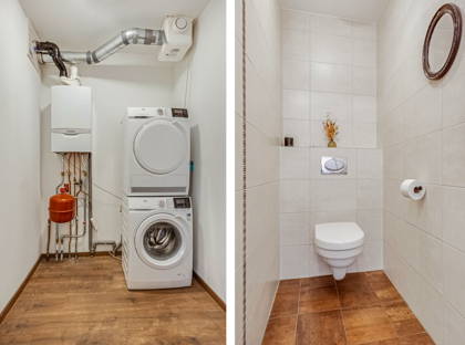 + Bijkeuken biedt plaats aan wasmachine, droger en ander witgoed. Hier is ook de HR-combiketel geïnstalleerd.