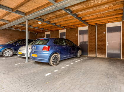 + Parkeren op de eigen parkeerplaats onder een gezamenlijke carport met eigen berging aan achterzijde complex.
