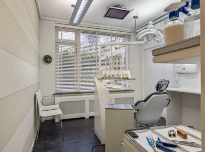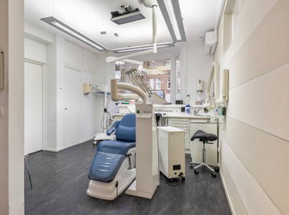 Voorbij de voordeur blijkt de woning volledig bedrijfsmatig te zijn ingericht. Alle ruimtes op de begane grond en de eerste verdieping maken deel uit van een tandartspraktijk. Het pand is voorzien van een kantoorruimte met ontvangstbalie, wachtruimtes en meerdere behandelkamers. Verder vind je er twee toiletruimtes, een bijkeuken, kelder, zolderkamer en stadstuin.
