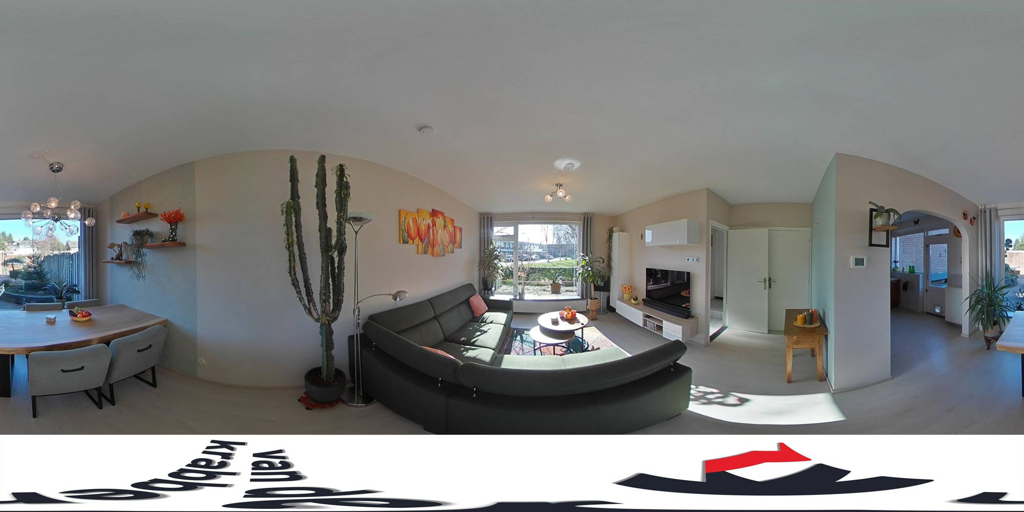 + Lichte doorzonwoonkamer met grote raampartijen aan de voor- en achterzijde. De ruimte is afgewerkt met strakke stucwanden en een stucplafond. Aan de achterzijde zijn kunststof kozijnen geplaatst met elektrische rolluiken.