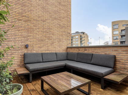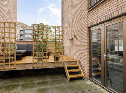 Het ruime dakterras vormt een echte eyecatcher van de woning en is direct toegankelijk vanuit iedere kamer. Recentelijk verhoogd, netjes afgewerkt én voorzien van elektra: dé perfecte plek om heerlijk van het buitenleven te genieten!