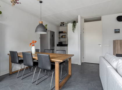 Bij binnenkomst word je direct verrast door de fijne indeling en moderne afwerking. De sfeervolle, lichte woonkamer is voorzien van een pvc vloer, vloerverwarming én een airco-unit uit 2023. De ruimte is netjes afgewerkt met kwalitatief spuitwerk, wat zorgt voor een strakke en moderne uitstraling.