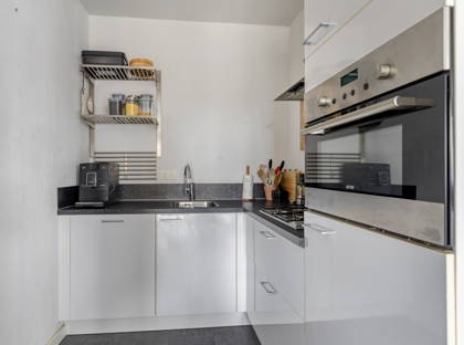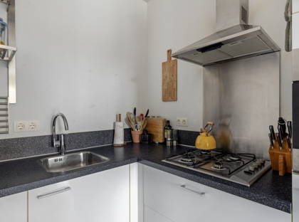 De moderne keuken (2014) is praktisch ingericht en uitgerust met gasfornuis, combi-oven, vaatwasser, koelkast en een nette afwerking. Het appartement beschikt over een ruime slaapkamer, een verzorgde badkamer uit 2018 met douche en wastafel, een separaat toilet én een praktisch washok met aansluiting voor wasmachine, droger, mechanische ventilatie en de cv-ketel (2014).